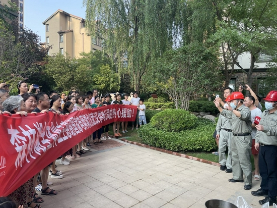 “师傅们辛苦了,吃点东西吧。”“我们来帮你们拖线吧。”小区居民纷纷围了上来,向党员突击队们表达谢意。