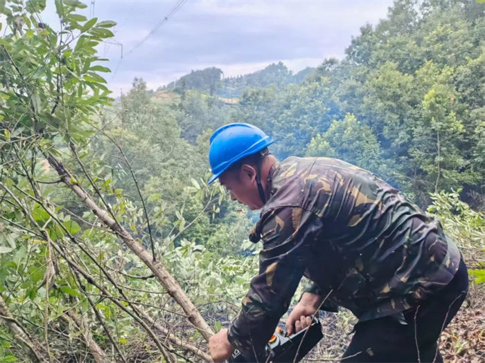 高温天气下,树木生长迅猛,树障隐患成为威胁线路安全的“隐形杀手”。清障班的同事们穿梭在山林田野间,手持工具、挥汗如雨,争分夺秒清理线路通道。他们的衣服被汗水浸透,皮肤被晒得通红,却始终没有停下脚步。“确保线路安全运行,一刻也不敢怠慢!”这是他们最朴实的承诺。